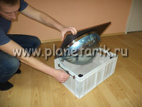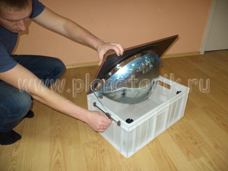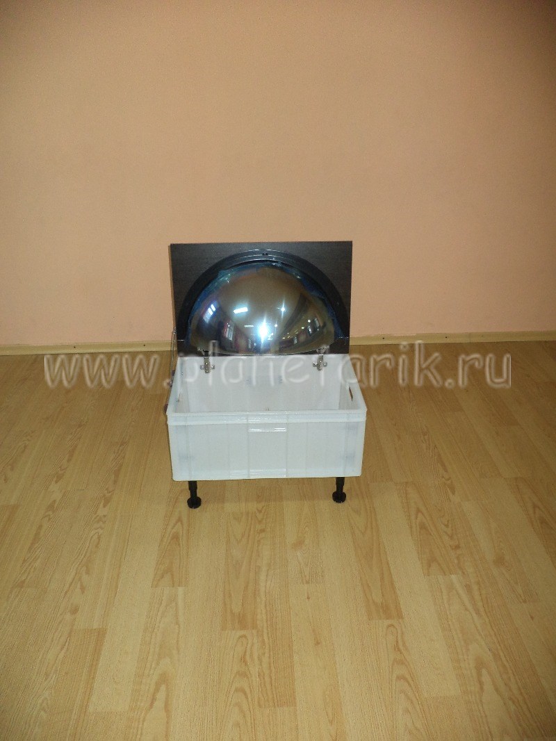 Зеркальная система представляет собой сферическое зеркало вмонтированное в короб с системой изменения угла наклона для получения оптимальной картинки на куполе.
