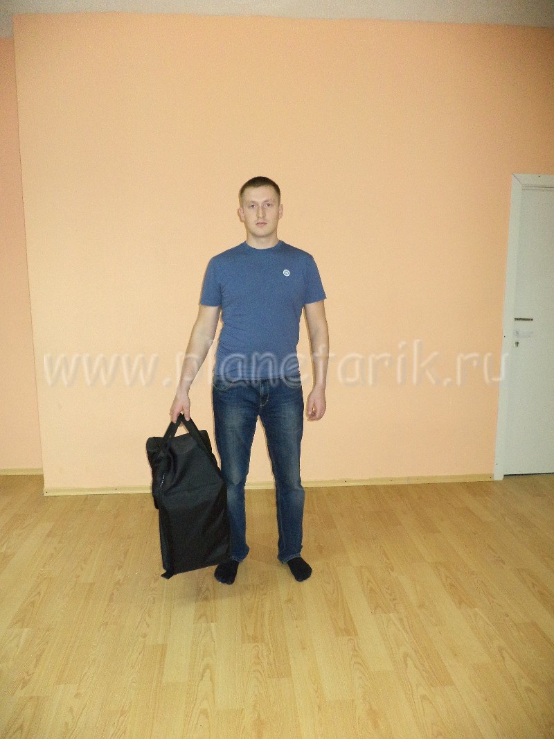 Габаритные размеры сумки (форма–тубус) для транспортировки изделия составляют 1,05 м по длине и 0,45 м в диаметре. Вес сумки вместе с изделием всего 6 кг, что делает наши маты лучшим решением для мобильных планетариев.
