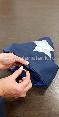 Габаритные размеры сумки (форма–тубус) для транспортировки изделия составляют 1,05 м по длине и 0,45 м в диаметре. Вес сумки вместе с изделием всего 6 кг, что делает наши маты лучшим решением для мобильных планетариев.